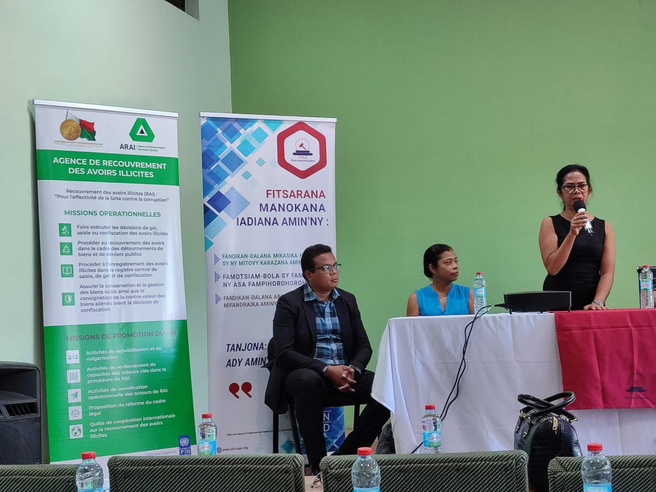 Raharijaona Lydie Andriampeno, présidente des chambres du PAC Second Degré au Siège d’Antananarivo, a dirigé la formation. L’équipe de l’ARAI est intervenue sur la thématique du recouvrement des avoirs illicites. En plus du renforcement de capacités sur cette thématique, les participants ont également échangé des expériences dans le but de renforcer les liens dans la pratique de leurs missions respectives.